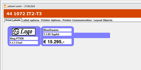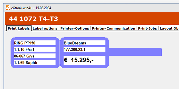 From your computer or tablet with Windows operating system version 10 or higher, you can print jeweller's labels in no time using eXtra4-win4. You can also structure jewellery and watches into groups. The modular programme provides you with additional features in three editions. For you there are different languages to choose from in the software. As a user of eXtra4-win4, you can benefit from the practical experience of an industry community that has been growing around the world for decades.