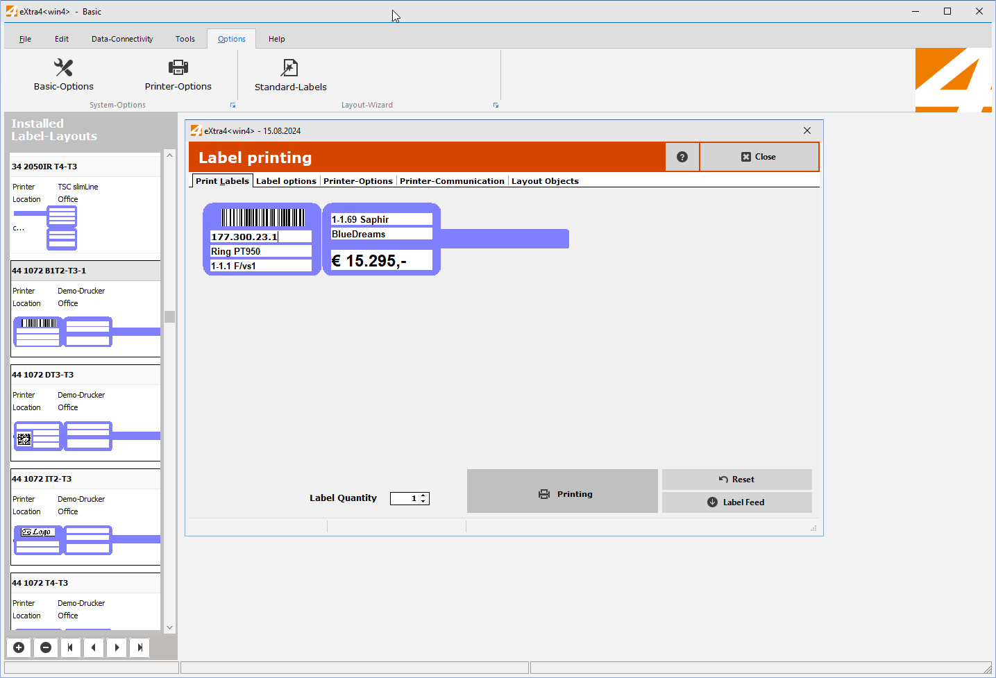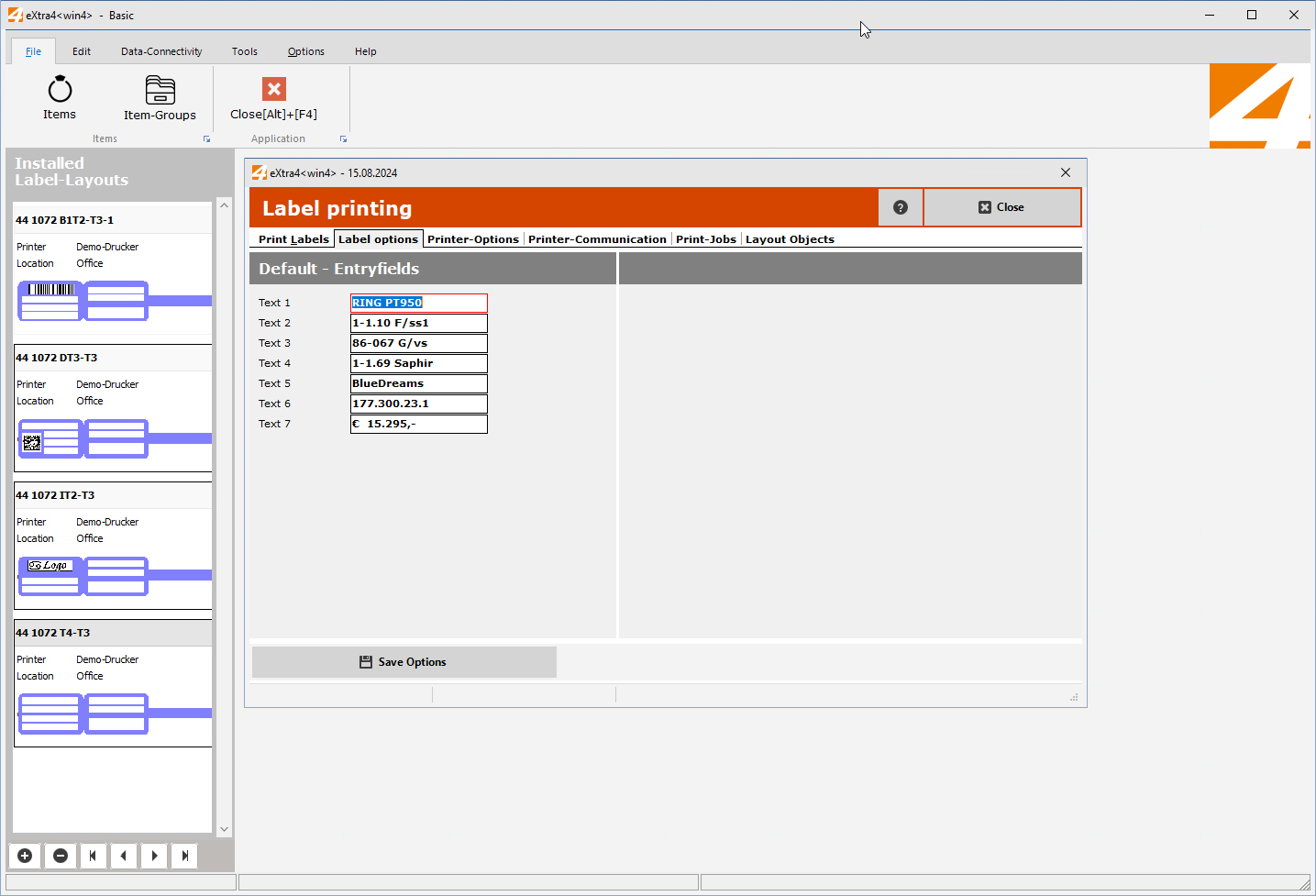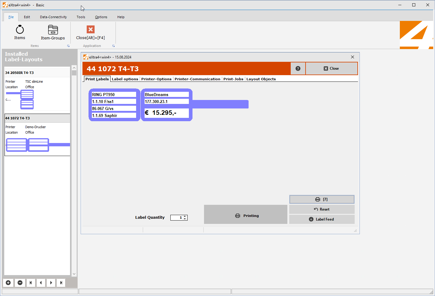 For eXtra4, labelling is not an end in itself, but a means to an end. Our application eXtra4-win4 helps you to set up organisational structures. You take the first step with label printing: You ponder: ‘What needs to be on my label? What data do I need to have at hand for which item?’ And you are already starting to analyse your business. – We'll help you get everything you need onto your label!
